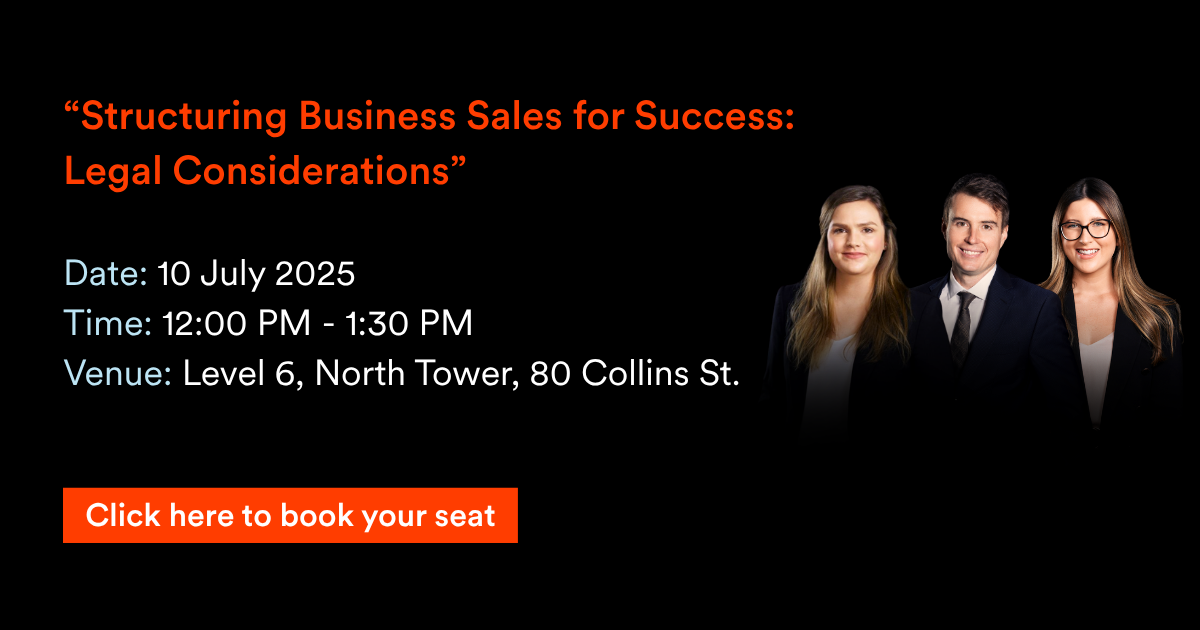 In today’s market, more business owners are preparing for sale than ever before. With increasing demand for high-quality exit advice, now is the time for professional advisers to deepen their understanding of the legal landscape surrounding selling business in Victoria.