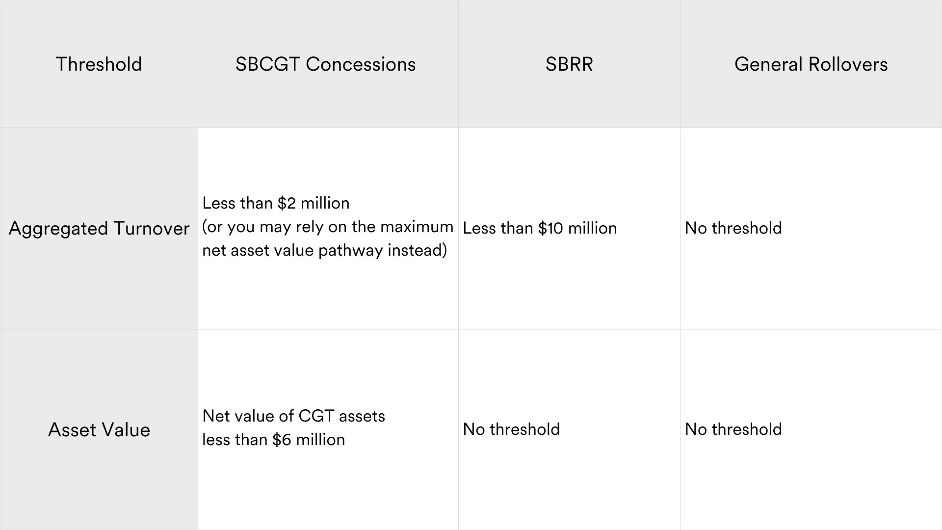 To access the SBCGT concessions, you must satisfy the basic conditions. At a high level: